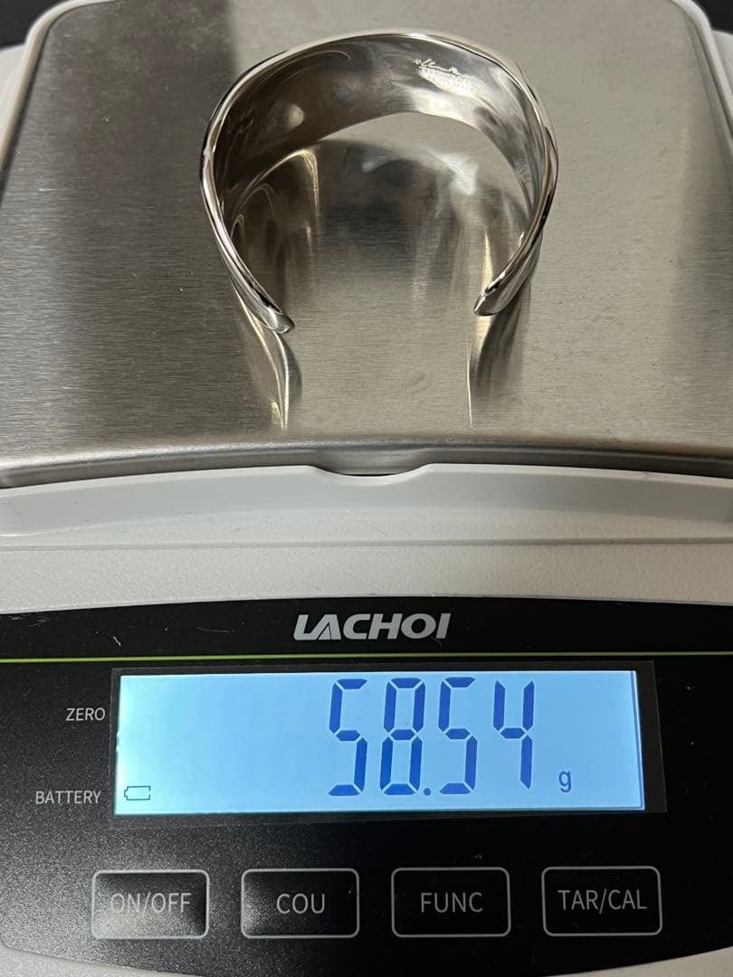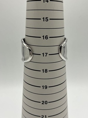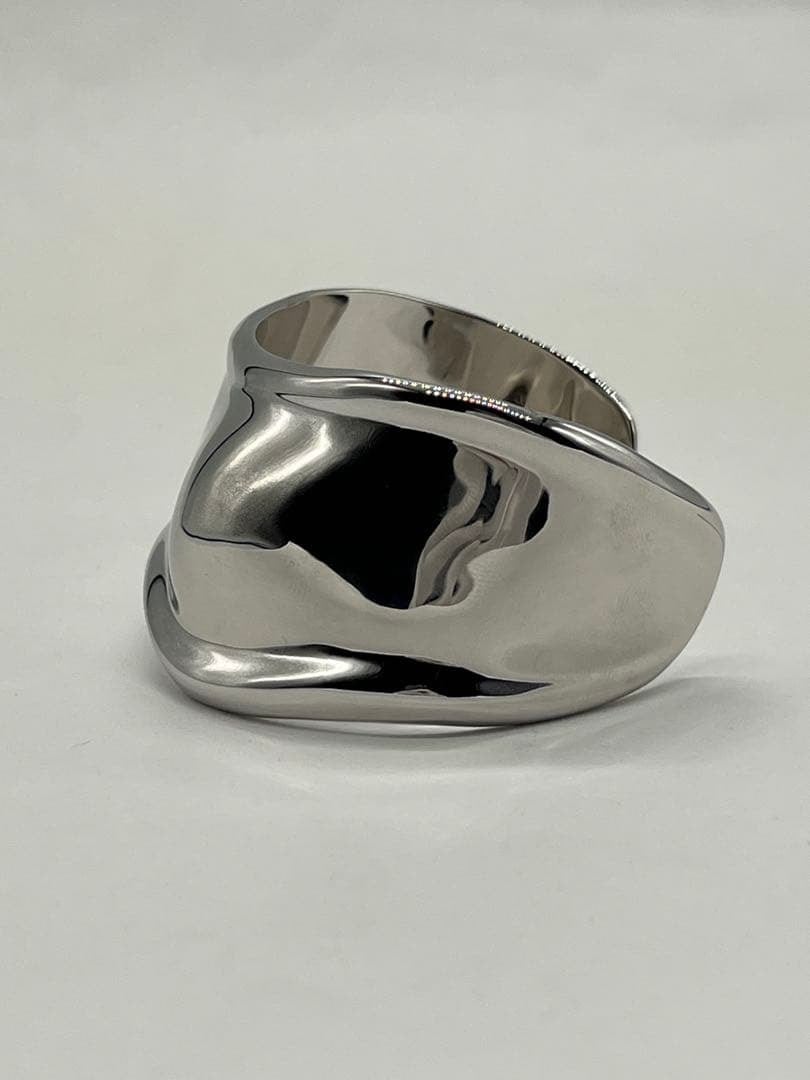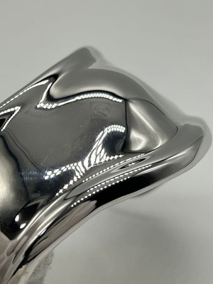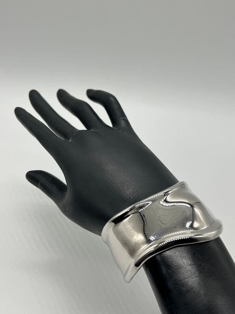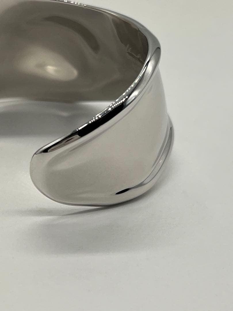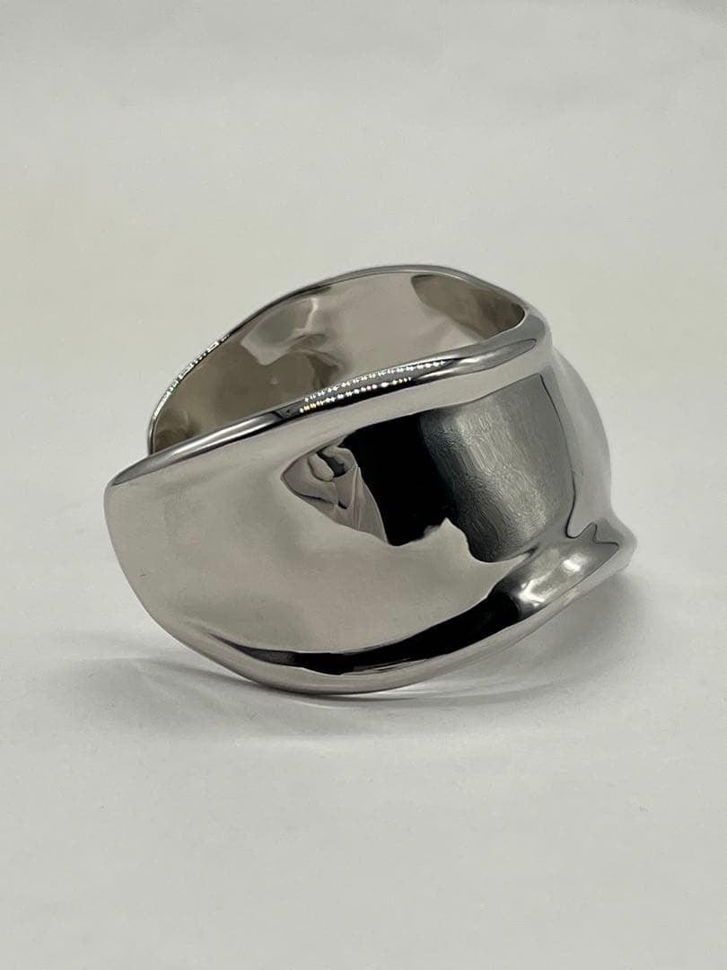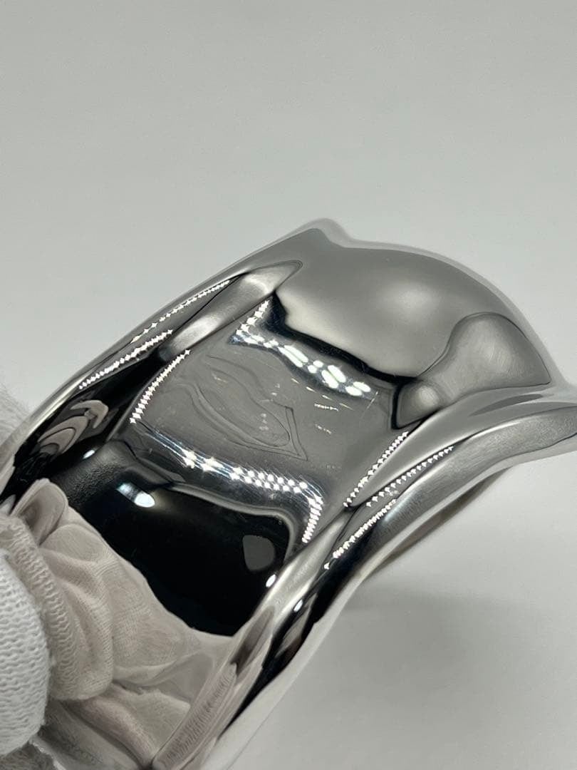 手首のカーブや骨格を引き立てるアシンメトリーなシルエットは、スモールサイズながらもボリューム感があり、着用時に存在感のあるお品物でございます。