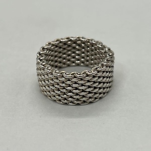 ヴィンテージティファニーで人気のサマセットリングはメッシュのデザインが特徴的で、動きのあるリングの為、指にしっかりとフィットする着け心地の良いお品物でございます。