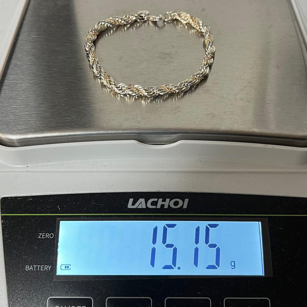 ツイストロープチェーンのブレスレットはチェーン幅が細いタイプと太いタイプがございますがこちらは太いタイプの方で着用時に存在感のあるお品物でございます。