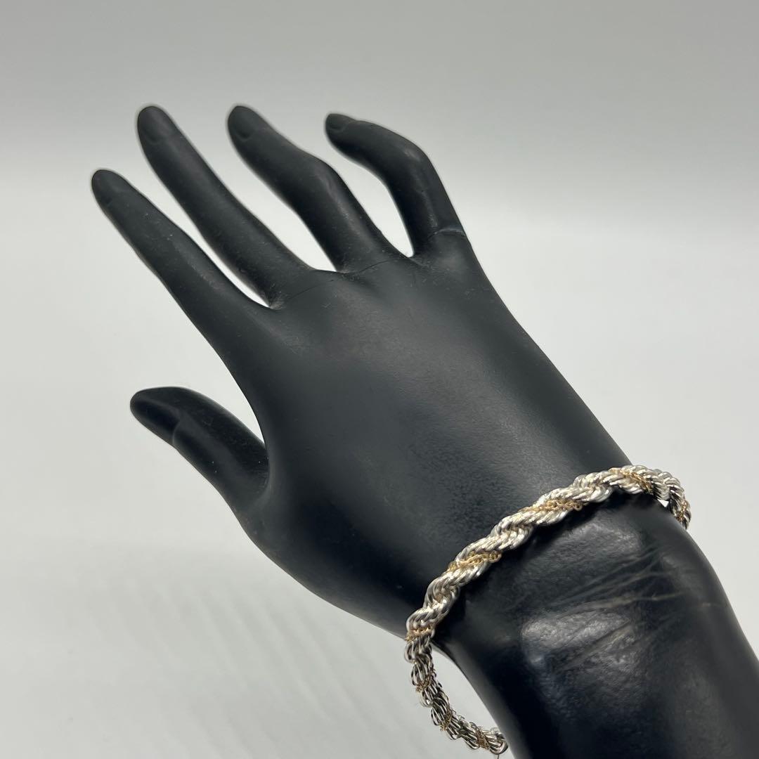 ヴィンテージティファニーで人気のツイストロープチェーンブレスレットはシルバー素材のロープのデザインにゴールド素材のチェーンが巻かれている事でティファニーらしい上品な印象でございます。