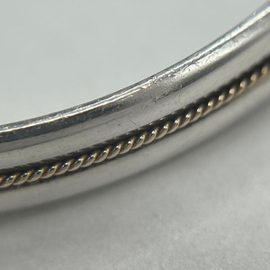 シンプルな細身のカフタイプのバングルにヴィンテージティファニーならではのツイストロープのデザインがゴールド素材で装飾されており、着用時に高級感のある上品な印象がございます。