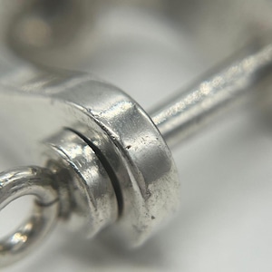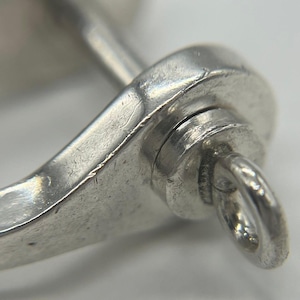 シャックルとは工事などで使われるワイヤーロープの先端に連結されるU字形の連結金具で、それをモチーフとしたデザインのシャックルキーリングはヴィンテージティファニーの中でも希少かつ人気のデザインでございます。