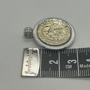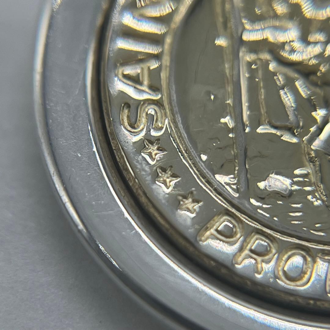 コインにセントクリストファーが刻印されたデザインで素材にはシルバーとゴールドが使われておりティファニーらしい上品なお品物でございます。