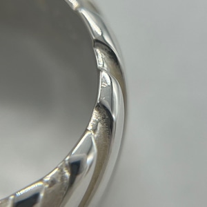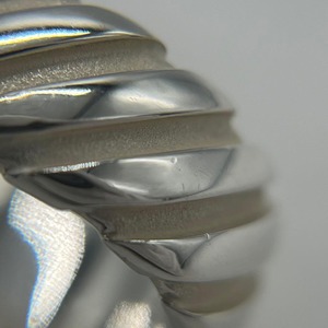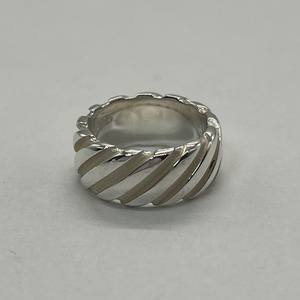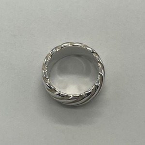 ツイストの様なデザインが施されたワイド幅のリングは着用時に存在感を放つお品物でございます。