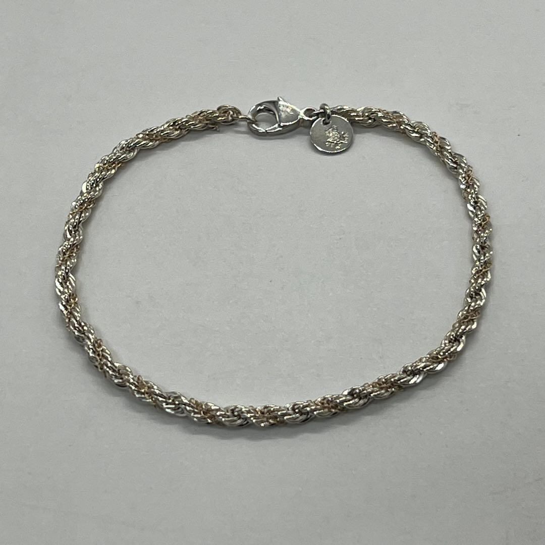 ヴィンテージティファニーで人気のツイストロープチェーンブレスレットはシルバー素材のロープのデザインにゴールド素材のチェーンが巻かれている事でティファニーらしい上品な印象でございます。
