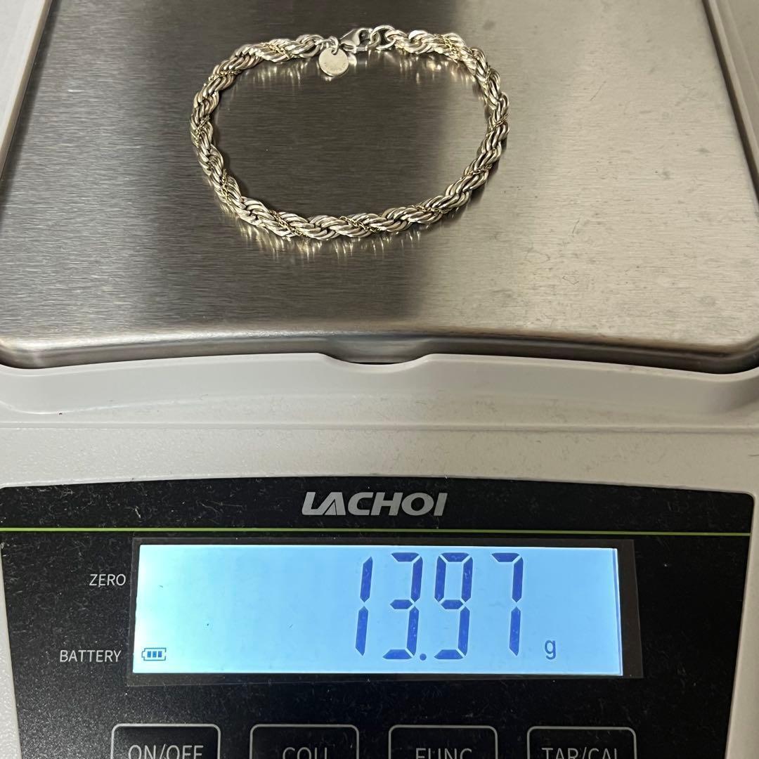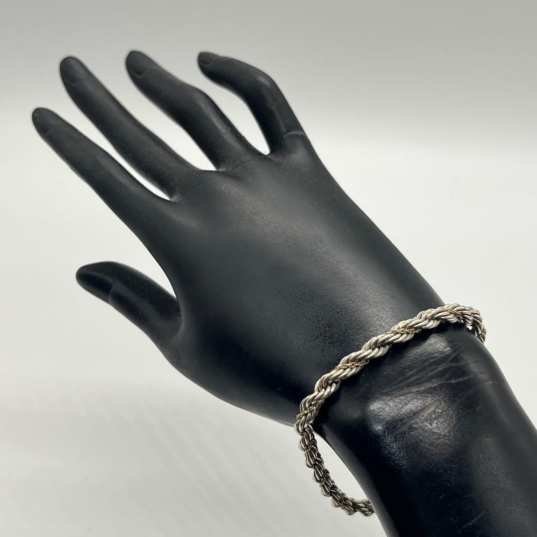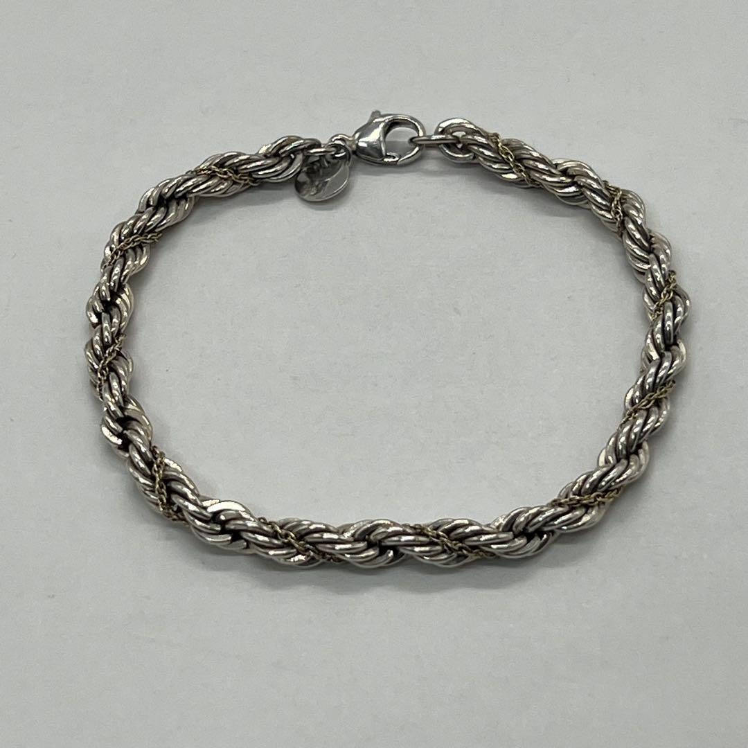 ヴィンテージティファニーで人気のツイストロープチェーンブレスレットはシルバー素材のロープのデザインにゴールド素材のチェーンが巻かれている事でティファニーらしい上品な印象でございます。